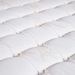 Com estrutura que inclui molas ensacadas individualmente, o Colchão de Molas oferece suporte uniforme e silencioso, além de bordas em espuma de alta resistência com revestimento em feltro, garantindo estabilidade. O enchimento interno é composto por lâminas de espumas D28 e D20, resultando em um apoio confortável e bem distribuído. O tecido das laterais, em poliéster com bordado zig-zag, confere um toque de sofisticação, enquanto a faixa lateral com aria 3D favorece a ventilação constante, preservando a frescura do Colchão Box. No tampo superior, a malha de poliéster conta com uma camada de espuma D24 hiper macia, e o acabamento em debrum reforça a durabilidade e o visual sofisticado do produto. Com pillow top one face e revestimento em poliéster.