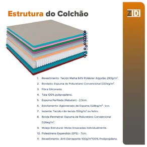 * OUTRAS CARACTERÍSTICAS INTERNAS Sistema Polyframe Reforço das Bordas em Espuma, Sistema utilizado nos colchões de molas, composto por um quadro que envolve com borda de espuma de alto suporte (D26) toda lateral do colchão.