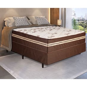 Caracteristicas: Molas ensacadas individualmente de arame de aco, bitola 2mm, media de 190 molas/m. Espuma de suporte D-33kg/m com borda perimetral D-26kg/m e feltro resinado. Tampo em malha 100 poliester bordado com espuma D-20kg/m, TNT e fibra de poliester.