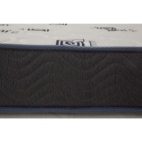Estrutura em espuma D33 Pró Aditivada de Alta Performance. Tecido em Poiéster , bordado em matelassê, tratamento e .