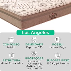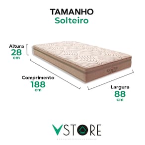 A tecnologia que a sua casa merece está na V-Store!O colchão Los Angeles, da V-Store, oferece conforto macio e suporte ideal com molas ensacadas, garantindo noites de sono tranquilas. Com proteções antiácaro, antialérgico, antifungo e antimofo, ele é perfeito para quem busca saúde e bem-estar. O sistema EPS contribui para uma experiência de sono ainda mais confortável, garantindo conforto térmico e resistência.Com 10 anos de garantia no molejo e 1 ano no estofamento (mediante avaliação técnica), você compra com confiança e tranquilidade.Adquira o colchão Los Angeles e aproveite o conforto que você merece!CARACTERÍSTICAS DO PRODUTOModelo: Los AngelesMarca: V-StoreTamanho: SolteiroDimensões: 88x28x188 (Largura x Altura x Comprimento)Conforto: MédioSistema: Molas EnsacadasPillow: Não se aplicaPeso Máximo recomendado: 150 kg (Por pessoa)Proteções: Antiácaro, antialérgico, antifungo, antimofoGarantia: 12 Meses (Espuma) / 10 anos ( Conjunto de Molas Ensacadas)