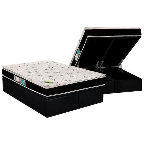 Conjunto Baú - Colchão Luckspuma de Espuma Ortopédica Aspen Super Firme + Cama Box Baú Universal CRC Camurça Black - Queen 1,58x1,98