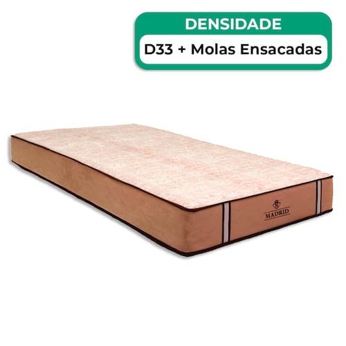 A tecnologia que a sua casa merece está na V-Store!O colchão Madrid, da V-Store, oferece conforto macio e suporte ideal com molas ensacadas, garantindo noites de sono tranquilas. Com proteções antiácaro, antialérgico, antifungo e antimofo, ele proporciona mais saúde e bem-estar. O sistema EPS contribui para um conforto adicional, oferecendo maior durabilidade e estabilidade. Com capacidade para até 150 kg por pessoa, ele se adapta perfeitamente às suas necessidades.Com 10 anos de garantia no molejo e 1 ano no estofamento (mediante avaliação técnica), você pode comprar com confiança e tranquilidade.Adquira o colchão Madrid e aproveite o conforto que você merece!CARACTERÍSTICAS DO PRODUTOModelo: MadridMarca: V-StoreTamanho: SolteiroDimensões: 88x28x188 (Largura x Altura x Comprimento)Conforto: MédioSistema: Molas EnsacadasPillow: Não se aplicaPeso Máximo recomendado: 150 kg (Por pessoa)Proteções: Antiácaro, antialérgico, antifungo, antimofoGarantia: 12 Meses (Espuma) / 10 anos ( Conjunto de Molas Ensacadas)