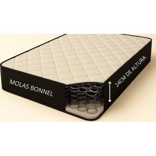 O Colchão com Molas Bonnel é altamente resistente e confortável, proporcionando melhor sustentação e durabilidade ao produto, o tampo é bordado, que entrega uma camada extra de conforto. Seu revestimento é com tratamento antialérgico e antiácaro. Esse é o colchão ideal para toda a família. *As cores do produto podem variar de acordo com o monitor, a iluminação do ambiente e a sua percepção visual.