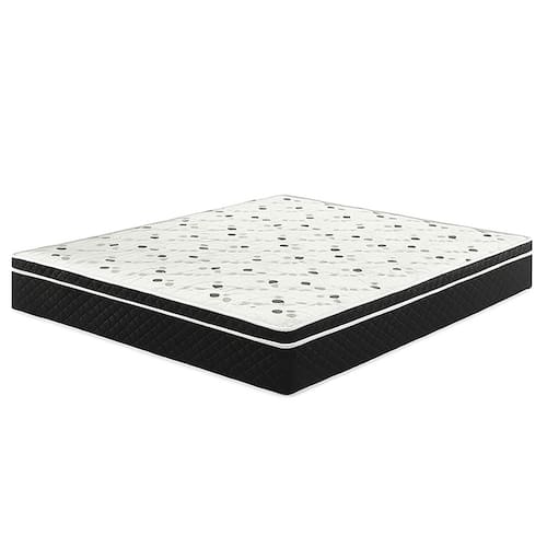 Especificações: • Medidas: 128 cm (largura) x 188 cm (comprimento) x 24 cm (altura) • Tipo: Molas Bonnel • Revestimento: Tecido matelassado (estampa conforme disponibilidade) • Lateral: Cor preta com costura reforçada e acabamento resistente