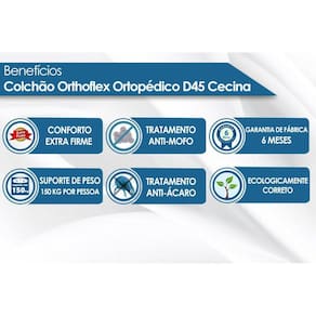 Colchão Orthoflex de Espuma Ortopédica D45 Cecina - Colchão Casal - 1,38x1,88x0,24 - Sem Cama Box