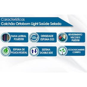 Colchão Ortobom de Espuma D23 Light Saúde Selado Liso INMETRO - Colchão Solteiro - 0,88x1,88x0,12 - Sem Cama Box