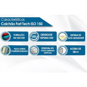 Colchão Ortobom D45 Fort Tech ISO 150 Mega Firme 28cm - Colchão Queen Size - 1,58x1,98x0,28 - Sem Cama Box