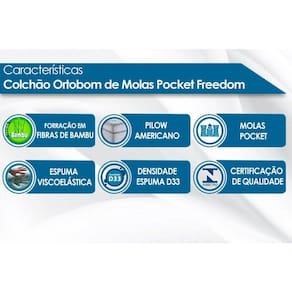 Colchão Ortobom de Molas Pocket Freedom Pillow Top Viscoelástico - Colchão Queen Size - 1,58x1,98x0,32 - Sem Cama Box