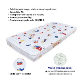 AS IMAGENS SÃO MERAMENTE ILUSTRATIVAS E PODEM SOFRER VARIAÇÕES DE COR E PEQUENOS DETALHES DE ACORDO COM O SEU MONITOR, ILUMINAÇÃO DO AMBIENTE E ATÉ MESMO A SUA PERCEPÇÃO VISUAL.ColchÃo para BerÃo Chiqueirinho DesmontÃvel 100x70x10cm em PoliÃster D18 - Baby Luxo Celiflex