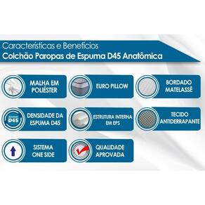 Colchão Paropas de Espuma D45 Anatômica Confort Mega Firme Black Euro Pilow Selado INMETRO 025 - Colchão Solteiro - 0,78x1,88x0,25 - Sem Cama Box