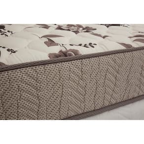 Estrutura em espuma D28 Pró Aditivada de Alta Performance. Tecido em Viscopoli, bordado em matelassê, tratamento antialérgico e antiácaro.