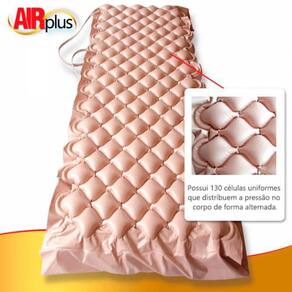 Características do colchão - colchão de ar com sistema de alívio de pressão alternada; - o sistema air plus massageia e estimula os tecidos inativos promovendo circulação vital; - reduz riscos de danos ao tecido da pele causado por pressão constante; - distribuição efetiva da pressão com regulagem; - eficiência de mais de 90% mesmo quando inclinado até 60; - leve, flexível e impermeável; - ciclos de 5 minutos para inflar e desinflar, alternando a pressão de ar de cada célula; - tecnologia super clean: sem cheiro / sem umidade / melhor higienização; - durabilidade: 10 vezes mais durável que um colchão de espuma casca de ovo tradicional.