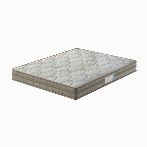 A primeira camada conta com conforto extra em Pillow Euro e matelassê preenchido com fibra siliconada e espuma D20 Cilíndrica. Seu revestimento em malha branca com detalhes na cor bege (AY) possui gramatura 220 gramas e finalização com bordado new max. O tecido em malha apresenta excelência em sua elasticidade e flexibilidade, o que o torna um material confortável e harmonioso no contato com a pele.