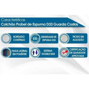 Todas as informações divulgadas são de responsabilidade exclusiva do fabricante/fornecedor. Forração Revestimento do Colchão: Poliéster Nível de Firmeza do Colchão: Firme Nossa Avaliação do Colchão: Qualidade Boa Peso Máximo Suportado do Colchão: 110 kg Tempo de Garantia do Colchão: 12 meses Certificação de Qualidade do Colchão: Qualidade Aprovada Bordado do Revestimento do Colchão: Contínuo Tecido com Tratamento do Colchão: AntiÁcaro e AntiFungo Tipo de Pillow: Pillow Top Americano Modo de Utilização do Colchão: One Side Forração do Revestimento Inferior do Colchão: Antiderrapante Camadas Interna do Estofamento de Espuma do Colchão: Alta Qualidade Densidade da Espuma do Colchão: D33 É eco-friendly: Sim É antiácaros: Sim Com moldura perimetral: Não Com pegas laterais: Não Número de registro/certificação INMETRO: N/A Tipo de Produto: N/A É kit?: Não Condição do item: Fonte do produto: N/A Código universal de produto (GTIN): 7899108965921 Produto precisa de Montagem?: Sim, a montagem é simples mas sugerimos a contratação do nosso serviço de montagem (para os CEPs em que o serviço está disponível) ou de algum experiente de sua preferência Descrição do Tamanho: 24.00x:158.00x198.00 cm Estado de Origem: RJ País de origem: Nacional Peso Produto Com Embalagem (Kg): 56.31 Material para Filtro: N/I Cor Mobly: N/I Condição do Item: Numeral: 0 Não se Aplica: N/A Não Possui: Não Linha/Modelo: Probel Cor Cnova: Blush Cor Meli: Ciano Categoria - Sub: Colchão de Espuma D33 Categoria - Pai: Colchão Comnto Embalagem: 198.00 Largura Embalagem: 158.00 Altura Embalagem: 24.00 Kit: 0 Peso: 56.31 Kg Peso Real Kg: 56.31 Peso Cubado: 187.70 Volumes: 1 M3: 0.75 Comnto/Profundidade: 198 cm Largura: 158 cm Altura: 24 cm Tamanho Montado: Larg:158.00 x Comp/Prof:198.00 x Alt: 24.00 Comnto/Profundidade Montado: 198.00 Largura Montado: 158.00 Altura Montado: 24.00 MPN: PA61140 Tamanho Cama Colchão: Queen Marca: Probel Fabricante: Probel Linha: Probel
