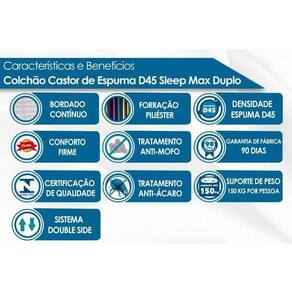 Colchão Queen Espuma D45 Sleep Max Euro Pillow (158x198x25) - Castor Marca: Castor