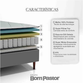 O Colchão Queen Molas Ensacadas Fiori 158x198x30 cm da Bom Pastor é a escolha ideal para quem busca noites de sono tranquilas com conforto e suporte de qualidade. Suas molas ensacadas individualmente garantem independência de movimentos e adaptação ao corpo, enquanto a espuma D33 selada oferece firmeza e resistência. O Super Pillow Top adiciona uma camada extra de maciez, tornando o descanso ainda mais agradável. Produzido com estrutura em EPS e direto da fábrica, esse colchão une durabilidade, tecnologia e excelente custo-benefício.