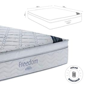 O Colchão Freedom proporciona um alto nível de repouso e conforto das estruturas óssea e muscular. Ele possui em sua área de conforto a espuma Viscoelástica, que absorve os pontos de maior pressão, memorizando os contornos do corpo, proporcionando um sono perfeito, melhor acomodação e diminuindo em até 80% os movimentos noturnos. Sua estrutura em Molas Ensacadas Individualmente funciona de forma independente, mantendo o perfeito alinhamento da coluna durante o repouso, além do movimento de uma pessoa sobre o colchão não interferir no sono da outra. Para completar a sensação de bem-estar ao dormir, o Freedom é revestido por tecido Ecobambu em Malha de Poliéster com Viscose, extremamente macio, tratado com aloe vera, óleo de jojoba e vitamina E, um tecido leve, suave e muito resistente às ações do tempo.