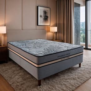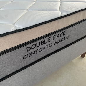 Sitema Double Face. Um lado do colchão com conforto macio, e outro lado com conforto mais firme, deixando duas opções de conforto no mesmo produto.