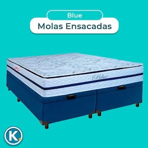 Colchão Queen Molas Ensacadas + Bau Blindado - Blue Paropas Conjunto Queen Colchão Blue + Cama Box Bau Colchão Queen com 32cm de altura, oferecendo conforto elevado e presença imponente
