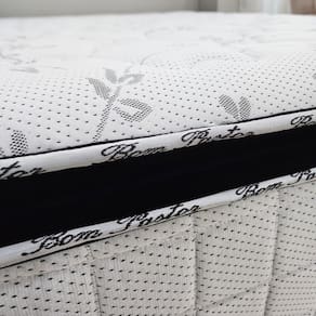 Estrutura em molas ensacadas individualmente e borda lateral em espuma de alto resiliência.