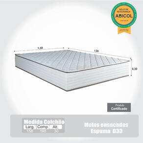 Estrutura em molas ensacadas individualmente e borda lateral em espuma de alto resiliência.