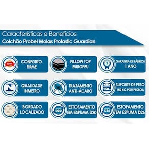 Colchão Queen Molas Prolastic Guardian Euro Pillow (158x198x36) - Probel