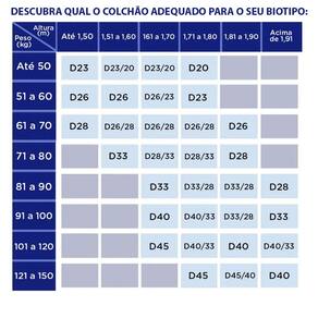 Características: Marca: Gazin Colchões Modelo: Misto Duo Extra Tipo: Colchão de espuma Tamanho do colchão: Queen Size Peso máximo suportado: 140 kg por pessoa Molejo: Espuma Composição: Matelassê malha, espuma D40, EPS, espuma D40, matelassê malha Revestimento superior do colchão: Malha Revestimento lateral do colchão: Suede Revestimento inferior do colchão: Malha Pillow: Euro IN duplo