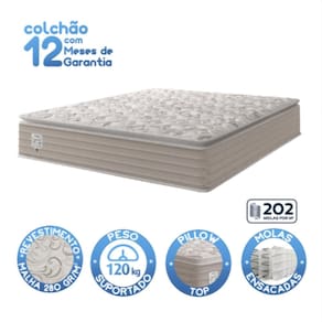 Tipo de molas: Molas ensacadas individualmente, que garantem melhor suporte, redução de ruídos e isolamento de movimentos, ideal para casais.