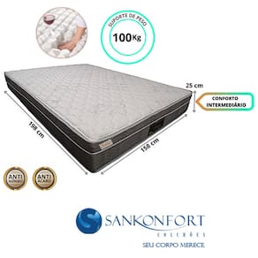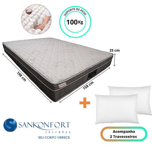 Colchão Casal Queen Sankonfort Riviera Molas Ensacadas 158x198x25 + 2 Travesseiros de Fibra