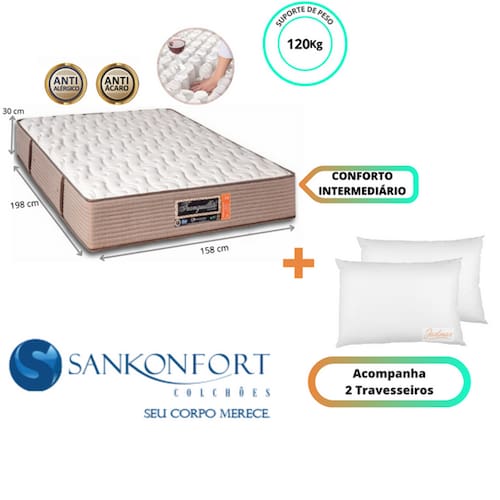 Colchão Casal Queen Tranquillité 158x198x30 Acompanha + 2 Travesseiros Fibra