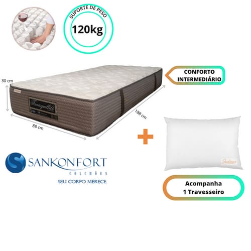 Colchão Solteiro Tranquillité 88x188 + Acompanha 1 Travesseiro de Fibra