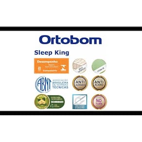 Novo Ortobom Sleep King tem sua estrutura composta por Molas Superpocket ensacadas individualmente, que fazem o peso de um corpo não interferir no conforto do outro. Possui Ortopillow com camada de espuma Látex (HR 45 de Alta Tecnologia), proporcionando o melhor suporte aos pontos de pressão do corpo. Seu tecido é em malha Ecobambú com elastano e lateral em Camurça, oferecendo um toque mais refrescante e maior suavidade. O Sleep King possui bordeamento lateral com espuma pró aditivada de alta performance, trazendo maios estabilidade e durabilidade ao produto. Possui respiros laterais que evitam a proliferação de ácaros, como também de bactérias e fungos. Devido a tecnologia No Turn. O Sleep King não precisa ser virado. Você merece um produto assim.