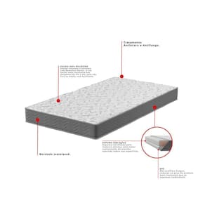 Colchão Semi Ortopédico Onface, espuma poliuretano de densidade 28Kg/M3 certificado pelo Inmetro com característica firme e auto suporte, EPS – este material não prolifera fungos, redução no peso do produto, é mais resistente que as espumas tradicionais. Conta com Tecido 100% poliéster, design inovador e estampa com desenhos florais, é um tecido mais resistente aos desgastes do dia a dia, pois não furam ou desfiam com facilidade. Ambiente Principal: Quarto Antiácaro: Sim Antialérgico: Sim Antifungo: Sim Certificado: INMETRO Cor: Grafite Cor do Produto: Grafite Informações Complementares: Colchão Semi Ortopédico Onface, espuma poliuretano de densidade 28Kg/M3 certificado pelo Inmetro com característica firme e auto suporte, EPS – este material não prolifera fungos, redução no peso do produto, é mais resistente que as espumas tradicionais. Itens Inclusos: 1 Colchão Nível de Conforto: Firme / Extra Firme Origem do Produto: Nacional Peso: 10.3 Pillow: Não possui Possui Certificado: Sim Possui Pillow: Não Precisa virar: Sim Recomendações de Uso, Manutenção e Limpeza: Seguir o manual de instruções Revestimento: Poliéster Tamanho: Solteiro Tipo de espuma: Espuma Poliuretano Tipo do Colchão: Espuma Misto.