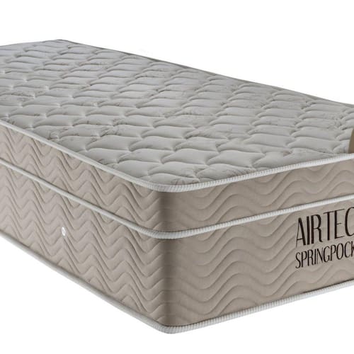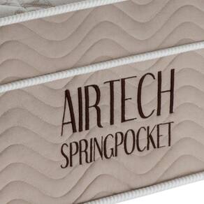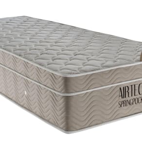 Colchão Airtech Spring Molas ensacadas Solteirão (108x198x30) - Estrutura em molas Superpocket, EPS, D26 Pró - Airtech. Novo Colchão Airtech Spring Molas ensacadas tem sua estrutura composta por Molas Superpocket ensacadas individualmente, que fazem o peso de um corpo não interferir no conforto do outro, proporcionando um perfeito suporte para a coluna e conforto para qualquer biótipo, possui Ortopillow e em sua camada de conforto espuma D26 Pró Aditivada de Alta Performance, bordado em matelassê e placa EPS. Seu tampo é em malha de alta qualidade e lateral em Camuça, apresentando um toque refinado ao Colchão. Possui a tecnologia No Turn, que dispensa a necessidade de virar o Colchão. O Airtech Spring Molas ensacadas recebe tratamento antialérgico e antiácaro, ajudando a reduzir os problemas respiratórios. Ideal para suas confortáveis noites de sono. Estrutura em molas Superpocket (ensacadas individualmente), placa EPS, Ortopillow, tampo em malha, bordado em Matelassê, manta de espuma D26 Pró, faixa lateral em Camurça, No Turn (não precisa virar), tratamento antialérgico e antiácaro. -Estrutura Interna: Molas Superpocket, placa EPS, Espuma D26 Pró de Alta Performance. -Estrutura externa: Tampo em Malha e feixa lateral em Camurça -Cor: Branco com lateral Bege -Altura: 0,3m -Largura: 1,08m -Comprimento: 1,98m -Peso: 34,2144kg -Capacidade de suporte: 120kg por pessoa -Acompanha: 1 Colchão Airtech Manual -Este produto possui 1 volume Cuidados: 1. Não coloque seu Colchão sobre estrado inteiriço exceto se utilizado sobre um box. Para melhor durabilidade utilize um box Ortobom. 2. Mensalmente escove e aspire seu Colchão, mantendo-o sempre limpo. 3. Não utilize ferro de passar roupas, secador de cabelos e outra fonte de calor ou vapor sobre o Colchão. 4. Para melhor conservação do produto utilize sempre um protetor de Colchão Ortobom. 5. Nunca dobre ou amasse o Colchão. 6. A cada 3 meses gire o Colchão lateralmente e de baixo para cima (com excessão dos colchões com tecnologia No Turn). Garantia: 12 Meses contra defeitos de fabricação