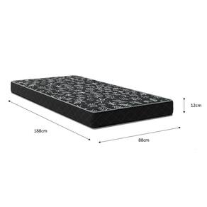 Colchão Solteiro 88 Espuma D20 - Tampo Preto 12cm.O Colchão Solteiro D20 é feito com poliester, aumentando assim a sensação de maciez, tecido com tratamento anti-ácaro, anti-mofo e anti-alérgico, espuma poliuretano densidade 20 e indicado para pessoas até 80 Kg.Informações do Colchão: 1. Tecido de revestimento: Poliéster Bordado.2. Cor: Preto.3. Modelo: Solteiro Simples.4. Dimensões:- Altura: 12cm;- Largura: 88cm;- Comprimento: 188cm.5. Peso limite: 80 kg por pessoa.6. Peso do produto: 4 kg.7. Material de estrutura: Espuma D20. 8. Tipo de conforto: Firme. 9. Garantia: 3 meses.Importante:-As imagens ambientadas são meramente ilustrativas e podem apresentar itens que não compõe o produto.- As cores do produto podem variar de acordo com o monitor, a iluminação do ambiente ou sua percepção visual.- Verifique se o local de entrega está apto a receber o produto com as dimensões informadas.- Não nos responsabilizamos em subir pelas escadas ou içar o produto.- Não nos responsabilizamos pela montagem ou instalação do produto.