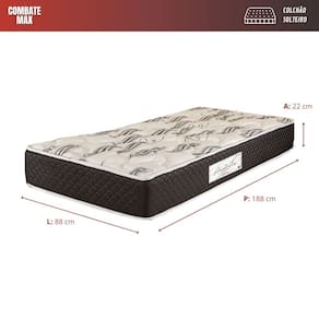 FICHA TECNICA DETALHADA Produto: Colchao de Molas Modelo: Prorelax Ametista Marca: Prorelax Tamanho: Solteiro Altura: 22 cm Largura: 88 cm Comprimento: 188 cm Molejo: Molas Bonnel -116 molas/m- Espuma: D33 -poliuretano- + borda D28 Revestimento: Tecido Stretch com respiros laterais Sistema: Pillow Top Turn Free -uso de um lado so- Nivel de Conforto: Intermediario Capacidade de Suporte: Ate 100 kg por pessoa