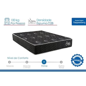 Suporte de Peso: - 110 kg Espuma de Estofamento: - D20 Nível de Firmeza do Colchão: - Firme Tipo de Estrutura Interna: - EPS Estrutura Bloco de Espuma: - Poliuretano, EPS Densidade da Espuma: - D28