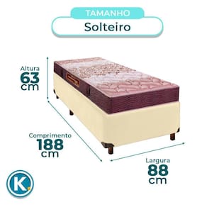 Colchão Solteiro D26 + Box Bege - Ortophedic Sankonfort Conjunto Solteiro Colchão Ortophedic + Cama Box Colchão solteiro padrão com 25cm de altura, proporcionando mais conforto e presença