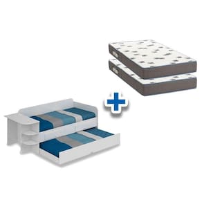 Colchão Solteiro D33 Ortobom (2un) + Sofá Cama Helena C/ Auxiliar Branco