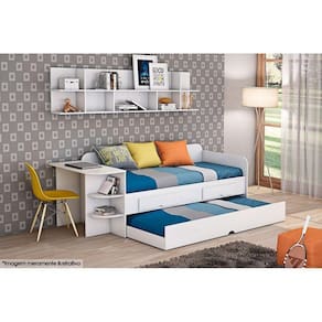Colchão Solteiro D33 Ortobom (2un) + Sofá Cama Helena c/ Auxiliar Branco Abaixo segue os produtos do KIT: Colchão Solteiro D33 Ortobom (2un) + Sofá Cama Helena c/ Auxiliar Branco Sofá Cama Solteiro Helena c/ 2 Gavetas e Auxiliar Branco - Cimol