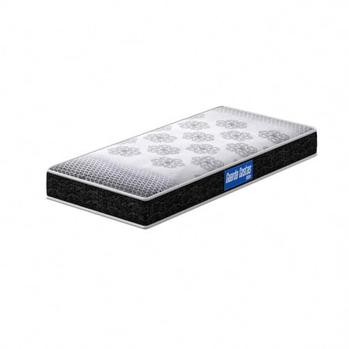 Tecido em poliéster em matelassê Densidade D20 Molejo de espuma Pode ser utilizado de ambos os lados Acabamento liso Tampo reto sem pillow Nível de conforto macio Possuí tratamento Antiácaro Antialérgico Não possui eps Suporte de peso 50kg