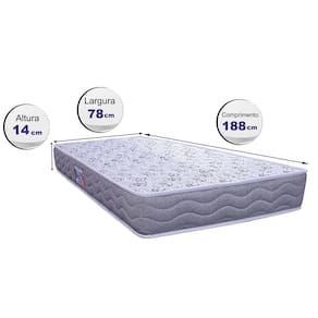 SOBRE O COLCHÃO Altura 14 cm Largura 78 cm Profundidade 188 cm Espuma Estrutural D28 Tampo Bordado com revestimento em Poliéster Revestimento da Faixa lateral em Linho