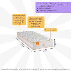 Colchão Solteiro Denver 88x188cm Molas Ensacadas Com Ultrasoft Foam Inducol Cr443a Branco/bege Branco/bege Se você busca o máximo de conforto num colchão macio, o Colchão Solteiro Denver 88x188cm Molas Ensacadas com Ultrasoft Foam Inducol CR443A é a escolha perfeita! Com espuma Ultrasoft Foam, conhecida por sua alta resiliência e toque suave, ele se ajusta ao corpo para proporcionar um descanso incomparável. Seu sofisticado sistema de molas ensacadas absorve movimentos e se adapta rapidamente aos contornos do corpo, tornando-o ideal para quem deseja noites de sono revigorantes. Tecido: Malha Poliéster/Viscose/Jacquard Acabamento: Debrum Com Pillow: Não Duplo Pillow: Não Conforto: Macio Peso Suportado: 130kg Hipoalergênico: Não Antiácaros: Não Eco-friendly: Sim Sistema: Turn-free (não é necessário virar o colchão, apenas girá-lo a cada 15 dias). Selo INMETRO: 09977-001-01/2023 Fabricante: Inducol