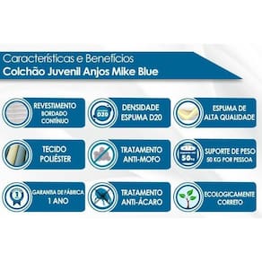 Colchão Solteiro Espuma D20 Mike Blue (78x188x14) - Anjos
