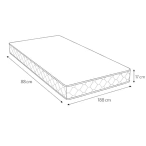 O Colchão com Espuma D33 é altamente resistente e confortável, proporcionando melhor sustentação e durabilidade ao produto, o tampo é bordado, que entrega uma camada extra de conforto. Seu revestimento é com tratamento antialérgico e antiácaro. Esse é o colchão ideal para toda a família.*As cores do produto podem variar de acordo com o monitor, a iluminação do ambiente e a sua percepção visual. *Confira as dimensões do produto e certifique-se de que passará normalmente por supostos elevadores, portas, escadas e/ou corredores de sua residência.Características do Colchão: - Proteções: Antiácaro - Antialérgico - Antifungo - Antimofo;- Acabamento: Bordado em Matelassê;- Matéria prima: Espuma/Bordado;- Densidade: D33;- Peso máximo recomendado: até 100kg (por pessoa)- Garantia: 3 meses;- Dimensões do produto (altura x largura x comprimento)17x88x188cm Cuidados com o Produto:*Não coloque seu colchão sobre estrado inteiriço exceto se utilizado sobre um box.*Mensalmente escove e aspire seu colchão, mantendo-o sempre limpo.*Não utilize ferro de passar roupas, secador de cabelos e outra fonte de calor ou vapor sobre o colchão.*Para melhor conservação do produto utilize sempre um protetor de colchão.*Nunca dobre ou amasse o colchão.*A cada 3 meses gire o colchão lateralmente e de baixo para cima (com exceção dos colchões com tecnologia No Turn) Marca: Não Informado