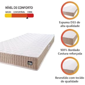 Se você está em busca de uma noite de sono perfeita, onde você possa descansar completamente para repor as energias para o dia seguinte, o Colchão New Millenium é a escolha perfeita para você. Possui espuma de alta qualidade em sua composição, trazendo conforto e durabilidade, além de ser um produto firme e resistente. Conta com garantia total de descanso e qualidade de vida. Suporta até 120kg por pessoa.Ideal para os amantes de colchão de espuma!
