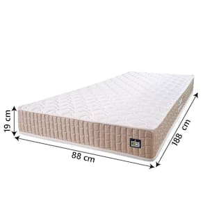 MEDIDAS:: [ A ] = 19 cm [ L ] = 88 cm [ P ] = 188 cm | PESO SUPORTADO:: 120kg por pessoa | PESO:: 6,24kg | MODELO:: NEW MILLENIUM | MARCA:: Hellen | COR:: Branco / Bege | REVESTIMENTO SUPERIOR:: Tecido em poliéster Branco que permite melhor ventilação, proporcionando conforto e sensação agradável ao toque. | TECIDO LATERAL:: Poliéster Bege, por ser sintético não é propenso ao acúmulo de poeira e materiais orgânicos, além de ser de fácil higienização. | REVESTIMENTO INTERIOR:: Espuma D33 que permitem que o colchão suporte até 120kg por pessoa, oferecendo conforto e estabilidade durante o sono. | REVESTIMENTO INFERIOR:: Tecido antiderrapante | ESPUMA:: D33 | POSSUI EPS:: Sim | ITENS INCLUSOS:: 1 colchão de 0,88m | GARANTIA:: 12 Meses pelo Fabricante | AVISO:: A Esplanada Móveis se responsabiliza pela entrega dos produtos adquiridos até a porta de entrada ou portaria do endereço indicado, se a portaria do condomínio permitir, as entregas são efetuadas no piso térreo Cor: BEGE/BCO
