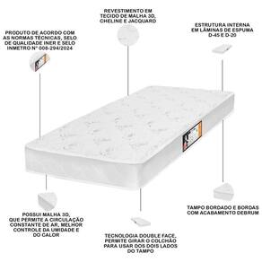 Com sua inovadora dupla face, você tem a liberdade de escolher entre dois lados, prolongando a durabilidade e adaptando-se às suas necessidades. Além disso, estrutura interna, feita com lâminas de espuma D45, proporciona um suporte ideal, enquanto a faixa lateral com tecnologia Aria 3D garante uma ventilação constante, criando um ambiente fresco e aconchegante. E o acabamento? Um verdadeiro espetáculo! Com bordado contínuo e debrum que reforçam as bordas laterais, o colchão solteiro exala elegância e estilo, elevando a decoração do seu quarto a um patamar.