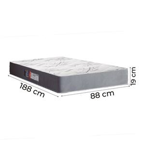 MEDIDAS:: A = 19 cm L = 88 cm P = 188 cm | MODELO:: EGITO | MARCA:: Portobel | COR:: Cinza/Branco | REVESTIMENTO SUPERIOR:: Possui revestimento do tampo em tecido poliéster, especialmente selecionado para garantir uma sensação agradável ao toque e um acabamento sofisticado. | REVESTIMENTO LATERAL:: Tecido suede que permite melhor ventilação, proporcionando conforto térmico e toque macio | REVESTIMENTO INTERIOR:: Espuma D28 de qualidade, que faz com que o colchão suporte até 100kg por pessoa, garantindo durabilidade e conforto | POSSUI EPS:: Sim | Peso:: 10kg | PESO SUPORTADO:: 100kg por pessoa | ITENS INCLUSOS:: 1 Colchão de 0,88m | GARANTIA:: 6 meses pelo Fabricante | AVISO:: A Esplanada Móveis se responsabiliza pela entrega dos produtos adquiridos até a porta de entrada ou portaria do endereço indicado, se a portaria do condomínio permitir, as entregas são efetuadas no piso térreo. Cor: Cinza